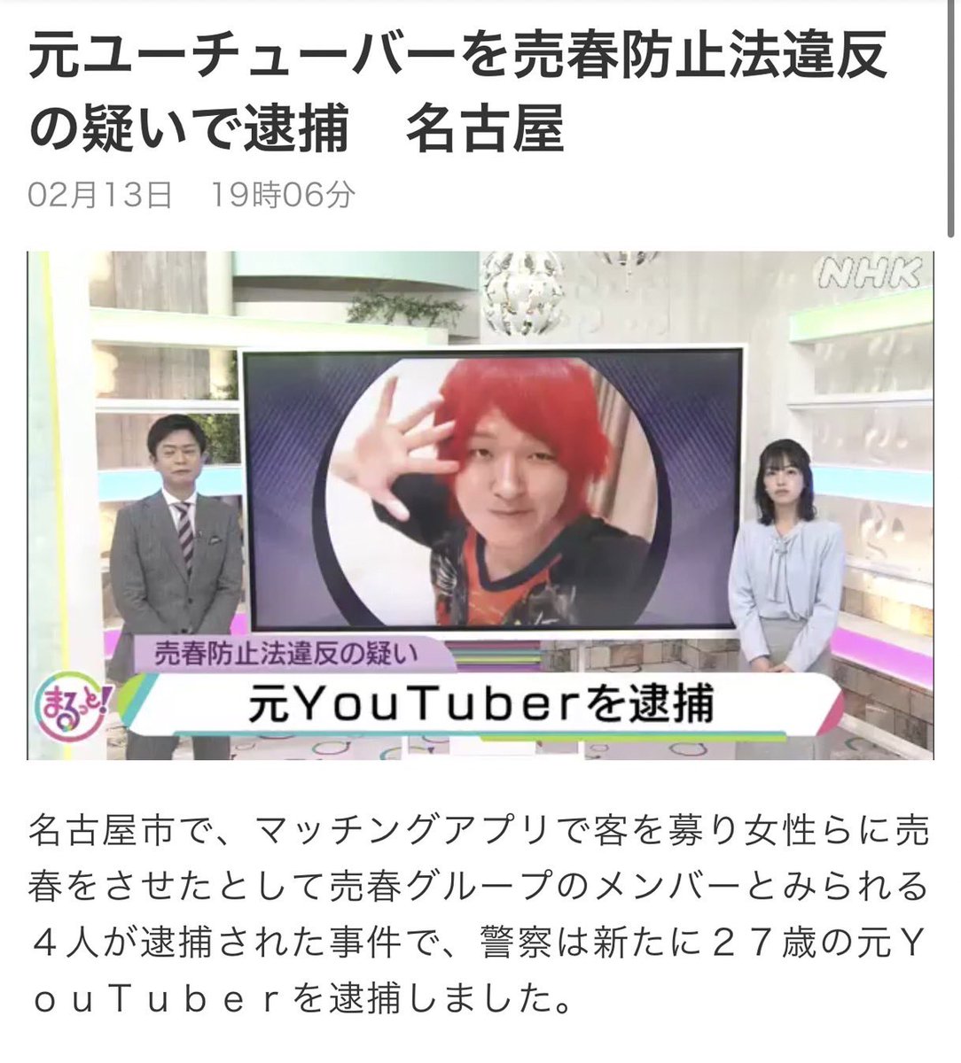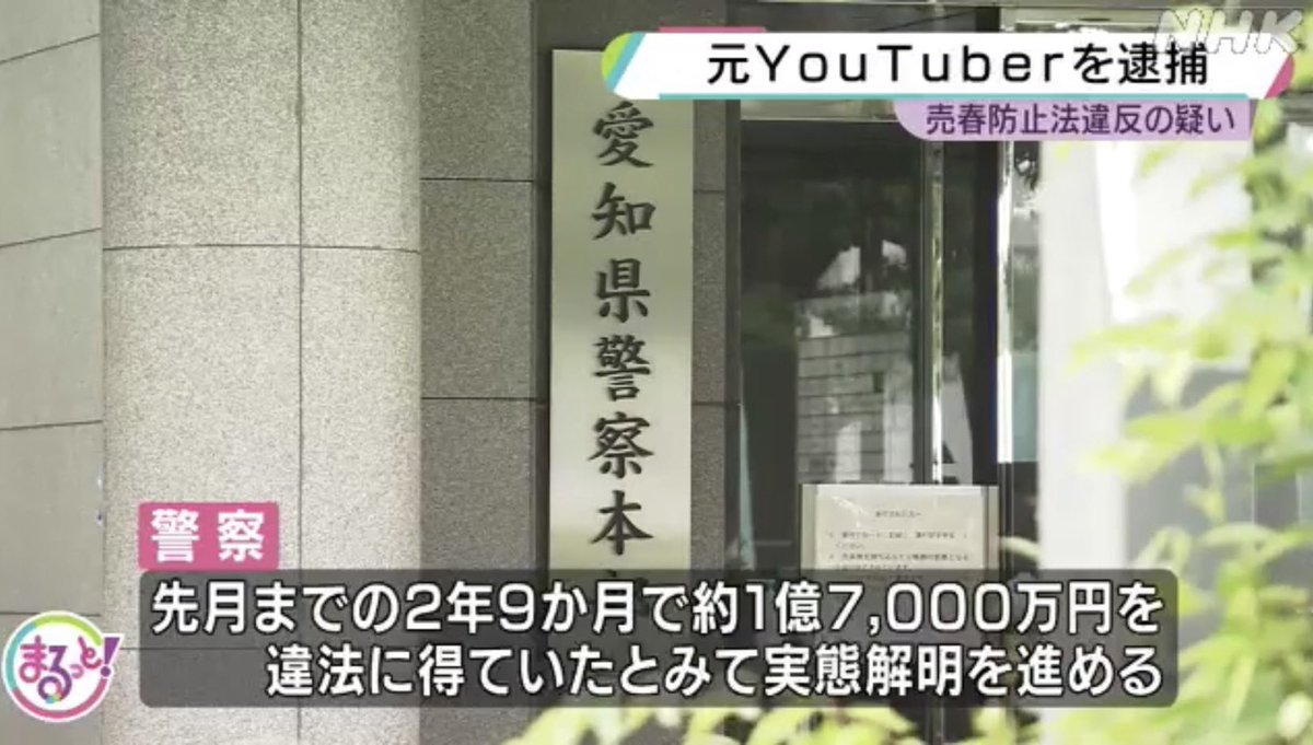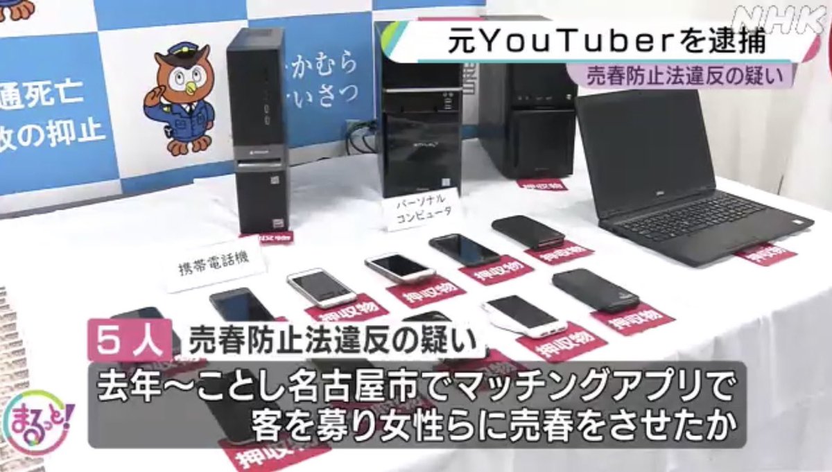 元ユーチューバーを売春防止法違反の疑いで逮捕 名古屋