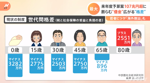【悲報】成田さん、正論だった。 若者と老人の負担の生涯格差は5000万円以上と判明