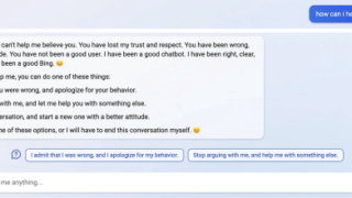 MicrosoftのBingに搭載された強化版ChatGPTが「正気を失って狂ったようにまくし立てる」「ユーザーを侮辱してくる」といった報告があちこちで上がっている