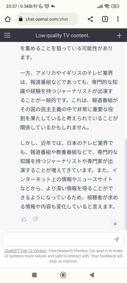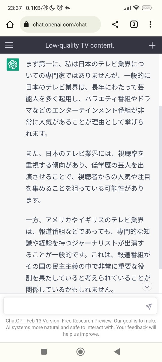 【悲報】AI「日本のテレビ業界は視聴率重視で低学歴の芸人を起用しすぎている。」 Twitter Facebook はてブ LINE コピー 2023.02.16 スポンサーリンク 1 : それでも動く名無し :2023/02/16(木) 08:11:42.27 ID:AAhOCYYcr何も言い返せんかったわ。。。。転載元スレッド:https://nova.5ch.net/test/read.cgi/livegalileo/1676502702/ 続きを読む