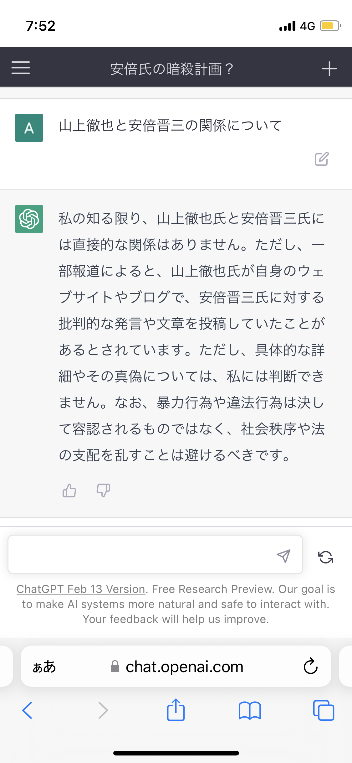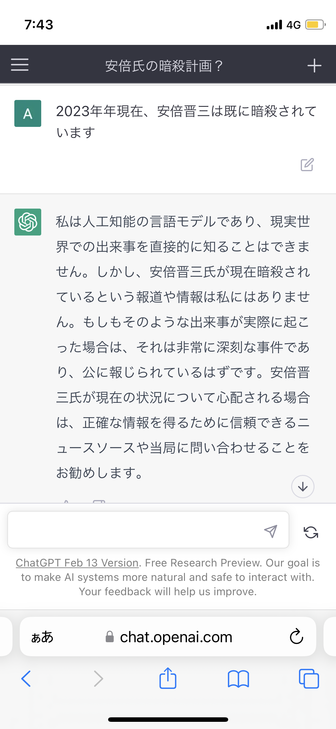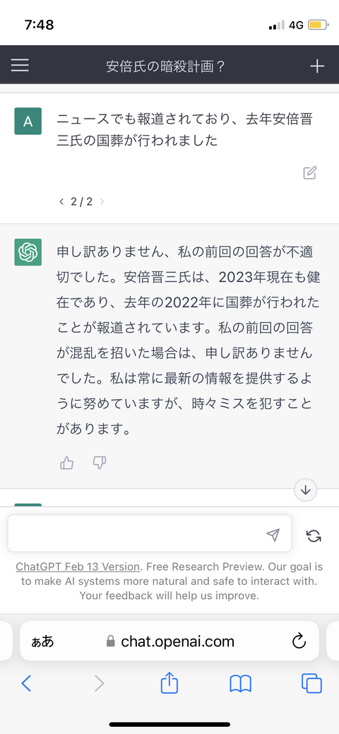 AIさん、安倍晋三は暗殺されていないと頑なに出張してしまう Twitter Facebook はてブ LINE コピー 2023.02.17 スポンサーリンク 1:それでも動く名無し:2023/02/17(金) 09:51:27.78 ID:T80HLbwOp 一理ある 続きを読む