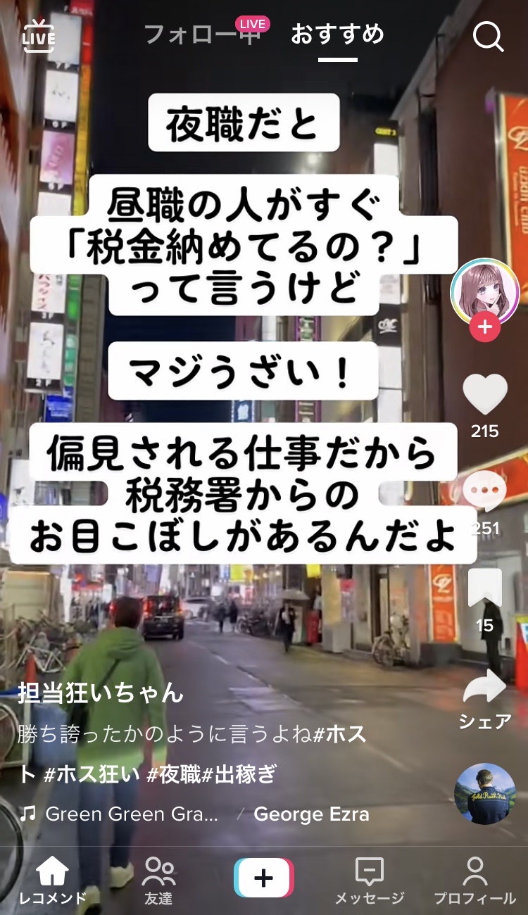 夜職女さん「税金納めてるの?って聞いてくる昼職の奴らまじうざい!」 Twitter Facebook はてブ LINE コピー 2023.02.18 スポンサーリンク 1: それでも動く名無し 2023/02/18(土) 09:57:36.95 ID:N77yCs4ud @kabukichopoison 勝ち誇ったかのように言うよね#ホスト #ホス狂い #夜職#出稼ぎ ♬ Green Green Grass (Sped-Up) - George Ezra 7: それでも動く名無し 2023/02/18(土) 09:59:00.41 ID:tT1//MUia お目こぼしあったらいかんでしょ 9: それでも動く名無し 2023/02/18(土) 09:59:03.47 ID:AX1wsM410 お前らよか納めてるよ!ってドヤるんかと思ったら違うんかい 続きを読む
