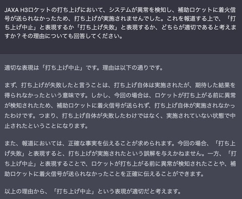 【朗報】AI 「ロケット打ち上げ失敗は誤った表現です。中止が正しいです」