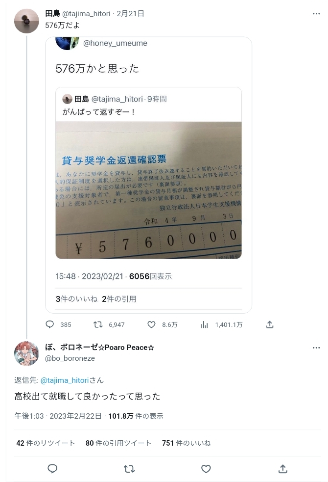【悲報】高卒「高い奨学金背負うくらいなら高卒でよくね?」→叩かれまくるwwwwwwwwwwwww Twitter Facebook はてブ LINE コピー 2023.02.23 スポンサーリンク 1:2023/02/23(木) 03:50:32.01 ID:IyvP3W0H0転載元スレッド:https://nova.5ch.net/test/read.cgi/livegalileo/1677091832/ 続きを読む