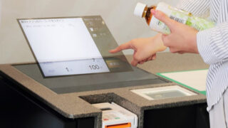 レジ台の下に設置されたタッチ画面の光が特殊なガラスパネルを通過し、レジ台の上部に像が浮かび上がる仕組み。センサーが指の動きを感知し、操作できるようになっている。