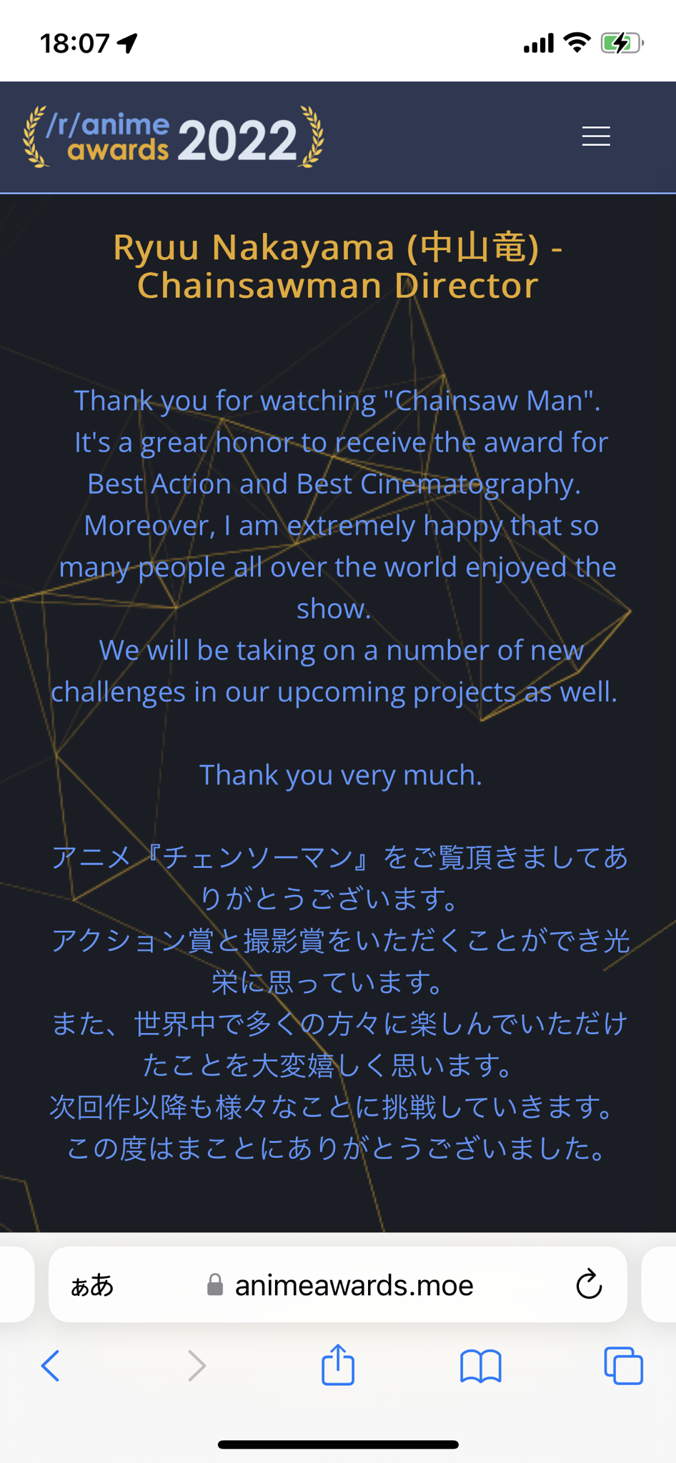 昨日redditのanime awards 2022の発表があって