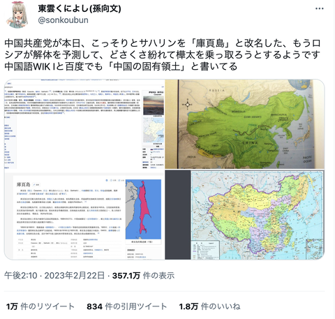 【悲報】中国、サハリンを勝手に改名してロシアから領土を乗っ取る模様 Twitter Facebook はてブ LINE コピー 2023.03.01 スポンサーリンク 1:風吹けば名無し:2023/02/27(月) 20:10:47.27 ID:GueZC7Lb0.net 2:風吹けば名無し:2023/02/27(月) 20:11:56.56 ID:IHxwUEtJd.net やっちまえ父さん 3:風吹けば名無し:2023/02/27(月) 20:12:21.66 ID:f7yooq2fa.net 父さん… 4:風吹けば名無し:2023/02/27(月) 20:12:28.40 ID:ZNgnzn2q0.net 中対露になったら草 続きを読む
