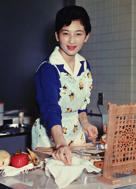 1961年10月、東宮御所の台所でレモンジュースを作る