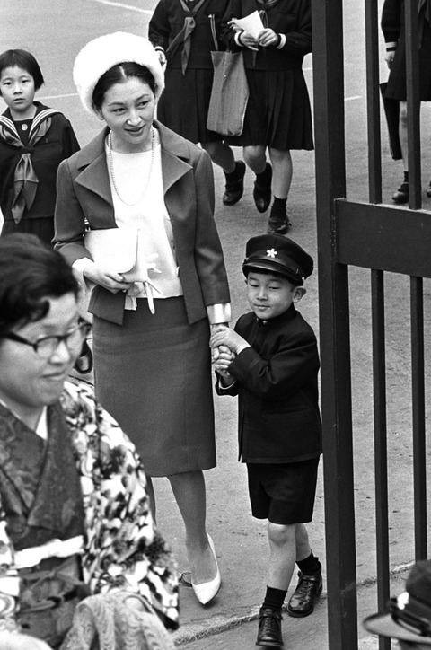 1976年3月、学習院幼稚園の卒業遠足で紀宮さまと自転車に乗る。横浜市の「こどもの国」で
