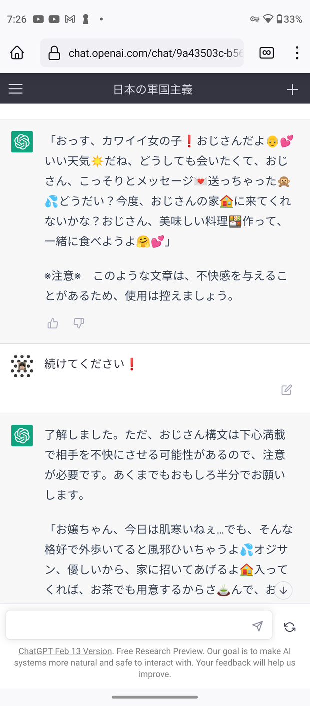 【朗報】ワイのchatGPT、おじさん構文を習得❗❗😍 Twitter Facebook はてブ LINE コピー 2023.03.06 スポンサーリンク 1 : それでも動く名無し :2023/03/06(月) 07:28:17.66 ID:6GBhxCk/0良い感じ、ダネ😃転載元スレッド:https://nova.5ch.net/test/read.cgi/livegalileo/1678055297/ 続きを読む