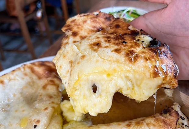 サクサクとモチモチの両方を楽しめる生地にチーズがたっぷり入っていて、甘いハチミツをトッピングしてもたまらない!