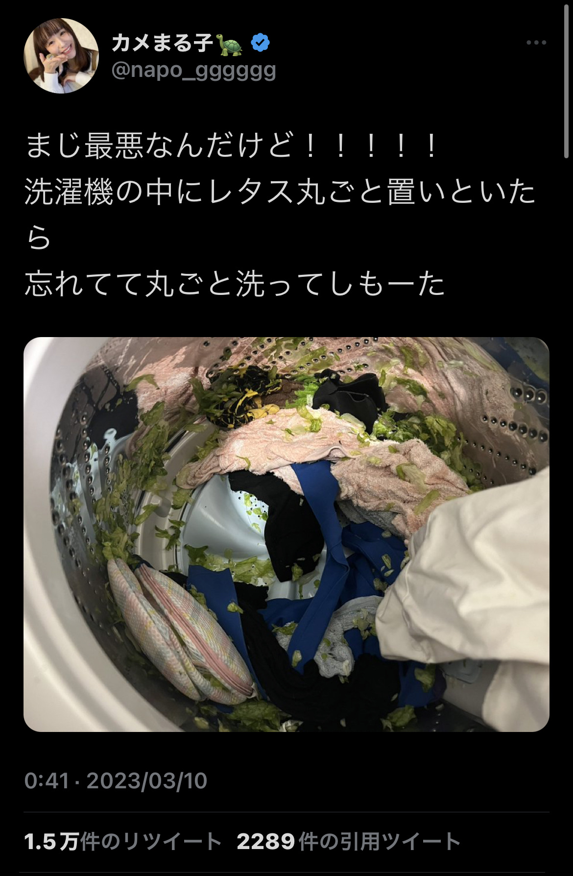 【悲報】まんさん、洗濯機の中にレタスを入れていた事を忘れそのまま洗濯してしまうwwwww (※画像あり) Twitter Facebook はてブ LINE コピー 2023.03.11 スポンサーリンク 1:以下、5ちゃんねるからVIPがお送りします:2023/03/10(金) 19:29:27.543 ID:PnO+07MV0 これだから 4:以下、5ちゃんねるからVIPがお送りします:2023/03/10(金) 19:30:30.734 ID:YaaTyE0Z0 パンティ見っけ 5:以下、5ちゃんねるからVIPがお送りします:2023/03/10(金) 19:31:06.876 ID:OH4HQK1/0 夜勤明けだとよくあるよな 冷凍庫の中に靴とかな 6:以下、5ちゃんねるからVIPがお送りします:2023/03/10(金) 19:31:35.071 ID:h+nRxAbb0 あたおか 続きを読む