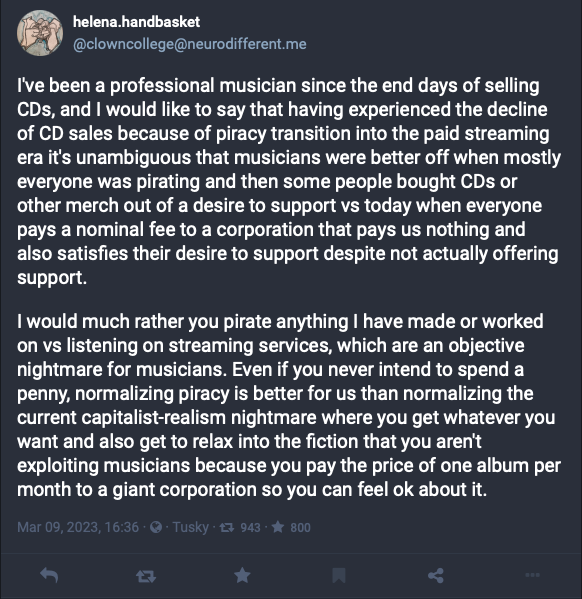 私は、ミュージシャンにとって客観的な悪夢であるストリーミングサービスで聴くよりも、