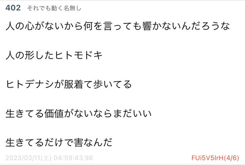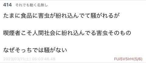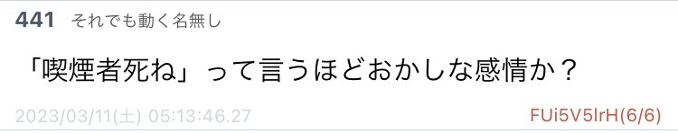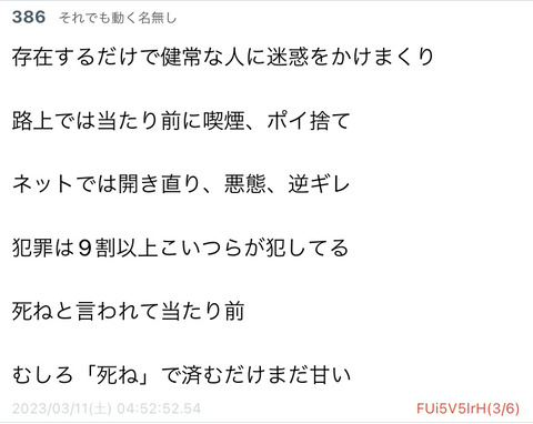 【特報】喫煙者、ひどい言われようだった…w Twitter Facebook はてブ LINE コピー 2023.03.12 スポンサーリンク 1:以下、5ちゃんねるからVIPがお送りします:2023/03/11(土) 14:00:57.642 ID:m0TWx5JKM 2:以下、5ちゃんねるからVIPがお送りします:2023/03/11(土) 14:01:48.681 ID:K+/Ud/W10 そんなに煙が嫌なら死ねばいいのに吸わないで済む 21:以下、5ちゃんねるからVIPがお送りします:2023/03/11(土) 14:39:55.588 ID:DHlu870A0 >>2 さっそく害虫が湧いとるやん こういうところだよな 続きを読む