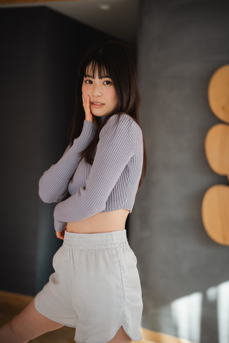 滝谷は、チームの人気メンバーとして、“きつねダンス”のブレイクに大きく貢献。そのバズりっぷりは、本人たちの想像の遥か上を行き、昨年末には紅白歌合戦に出演するなど、球団チアガールの枠を超えて活躍している。昨年、滝谷の弾ける笑顔にすっかり心を奪われた編集部が、意を決してグラビア登場をオファーしたが、1回目のオファーでは叶わず、ラストチャンスと覚悟した2回目のオファーで実現した。今回の企画のために北海道から東京に来てもらい、撮影を行った。