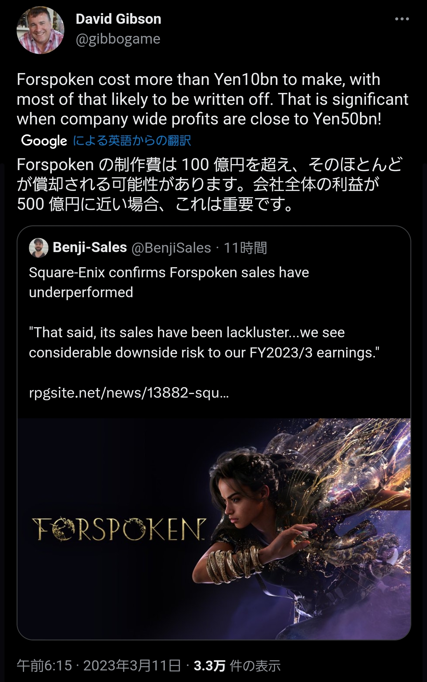 【悲報】爆死したスクエニ『フォースポークン』、開発費100億円以上か Twitter Facebook はてブ LINE コピー 2023.03.16 スポンサーリンク 1: 名無しさん必死だな 2023/03/11(土) 12:25:01.48 ID:ikgHCD1G0 https://twitter.com/gibbogame/status/1634301858486579200 7: 名無しさん必死だな 2023/03/11(土) 12:27:11.30 ID:uaaKkD9Y0 こんな酷い爆死続きじゃ社長辞めるわw 9: 名無しさん必死だな 2023/03/11(土) 12:28:24.94 ID:H477SKEUd それであの爆死とはそりゃルミナスなくなりますわ 続きを読む