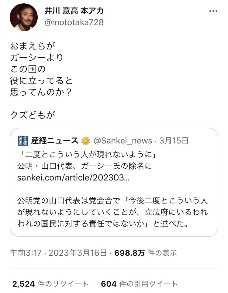 — 井川 意高 本アカ (@mototaka728) March 15, 2023