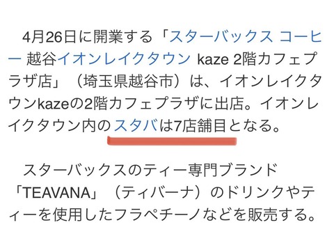 レイクタウンのスタバ、前人未到の7店舗目へ