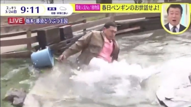 【悲報】オードリー春日、生放送でペンギン池にダイブ→那須どうぶつ王国ブチ切れ