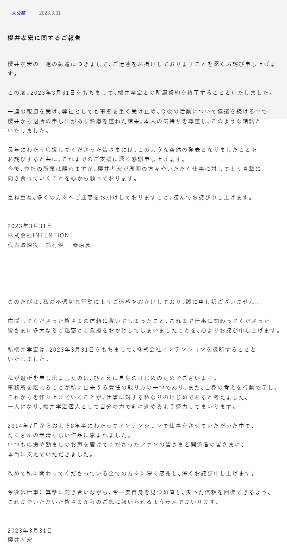 櫻井孝宏に関するご報告https://t.co/3v5xQnWisO
