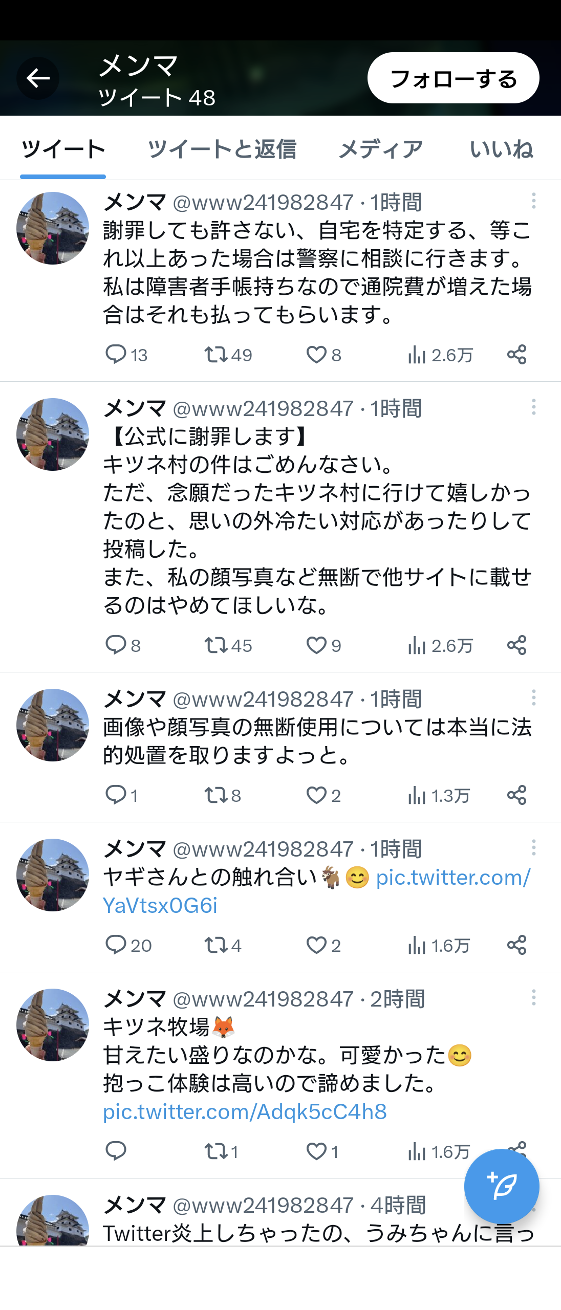 女さん、自分は障害者手帳持ちなのでこれ以上叩いた奴は通報すると謝罪する