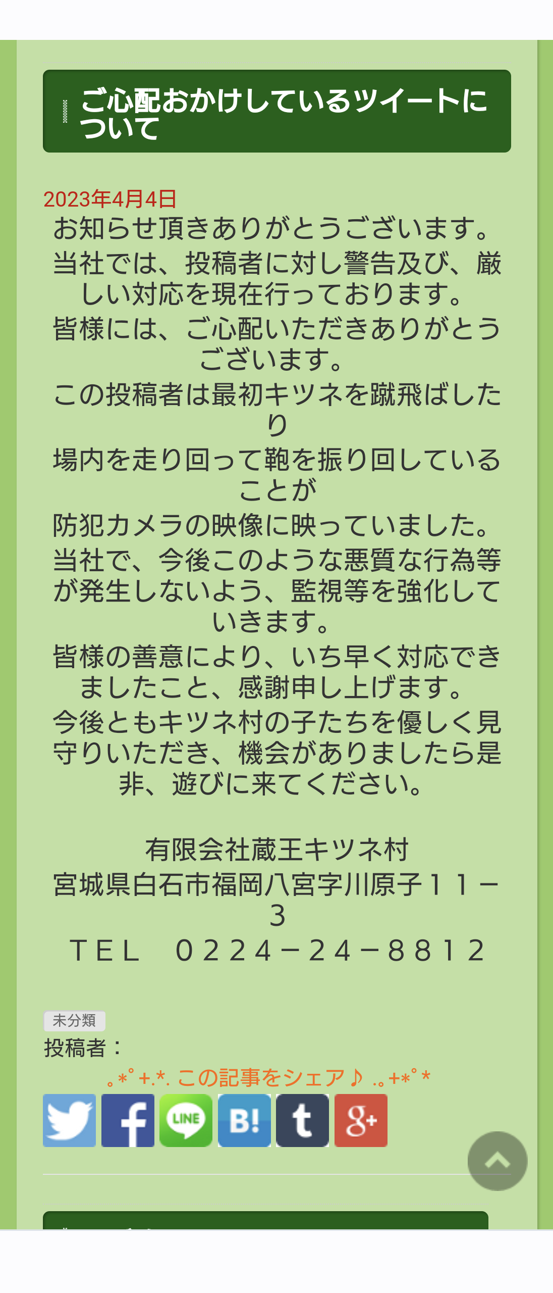 施設に設置している監視カメラには「投稿者の動画の前後の行動が記録されております」として、投稿者に対して、警告と法的な対応を検討しているという。 pic.twitter.com/9EXAUtz9j2