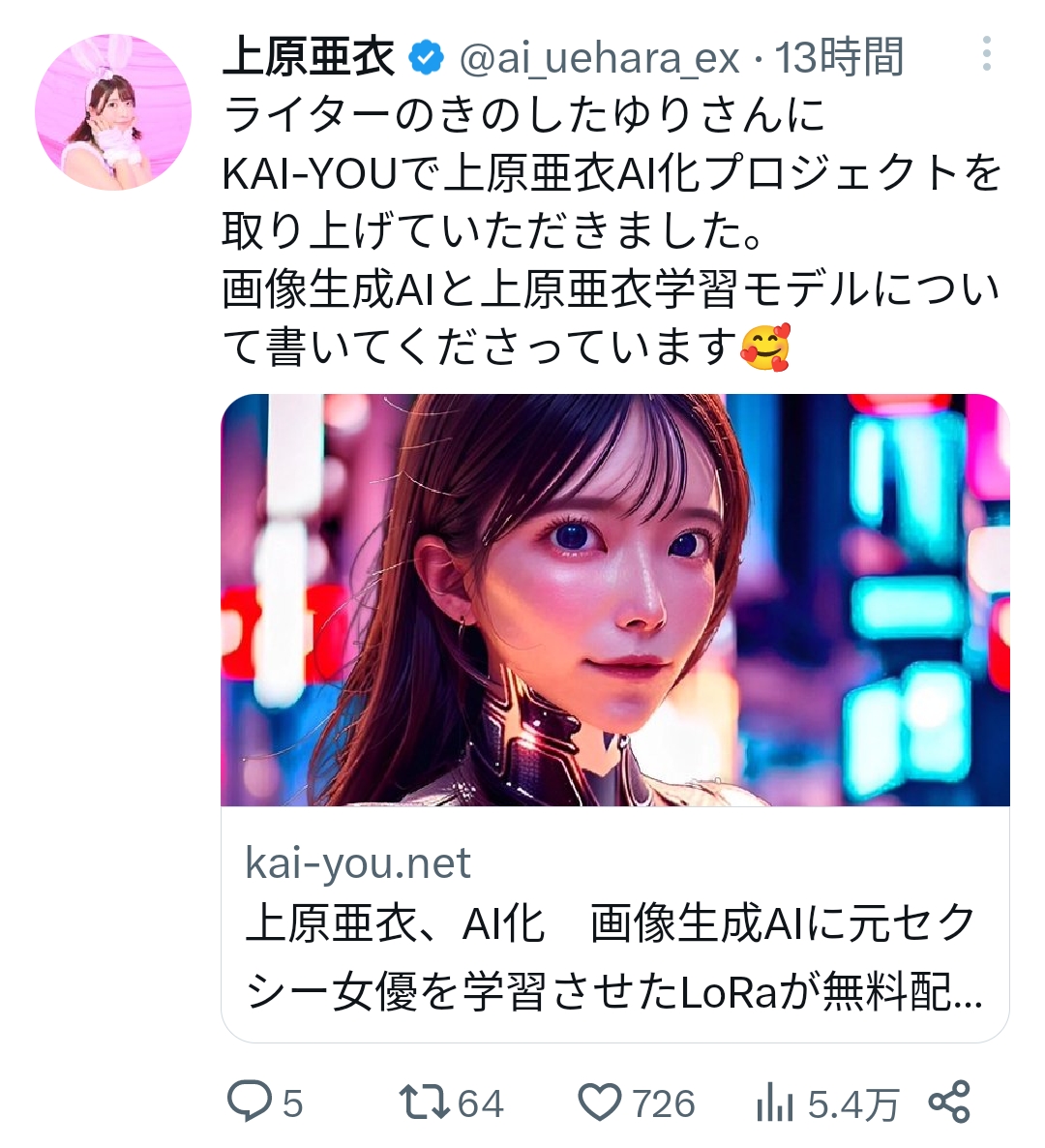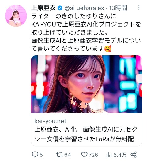 【画像】元セクシー女優の上原亜衣さんが公式AI化、本人公認でディープフェイク画像が作り放題にwwwwwwww Twitter Facebook はてブ LINE コピー 2023.04.05 スポンサーリンク 1:以下、5ちゃんねるからVIPがお送りします:2023/04/05(水) 12:10:20.432 ID:GSYSgYAgM やったね🤗 2:以下、5ちゃんねるからVIPがお送りします:2023/04/05(水) 12:12:53.510 ID:S+V5cDgQd 前の顔で作らせろ 続きを読む