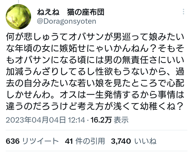 Twitter女子「男が言う『ババアは若い女に嫉妬してる』とかないから(笑)」 Twitter Facebook はてブ LINE コピー 2023.04.06 スポンサーリンク 1 : それでも動く名無し :2023/04/05(水) 22:56:40.69 ID:lWrKp9lzM転載元スレッド:https://nova.5ch.net/test/read.cgi/livegalileo/1680703000/ 続きを読む