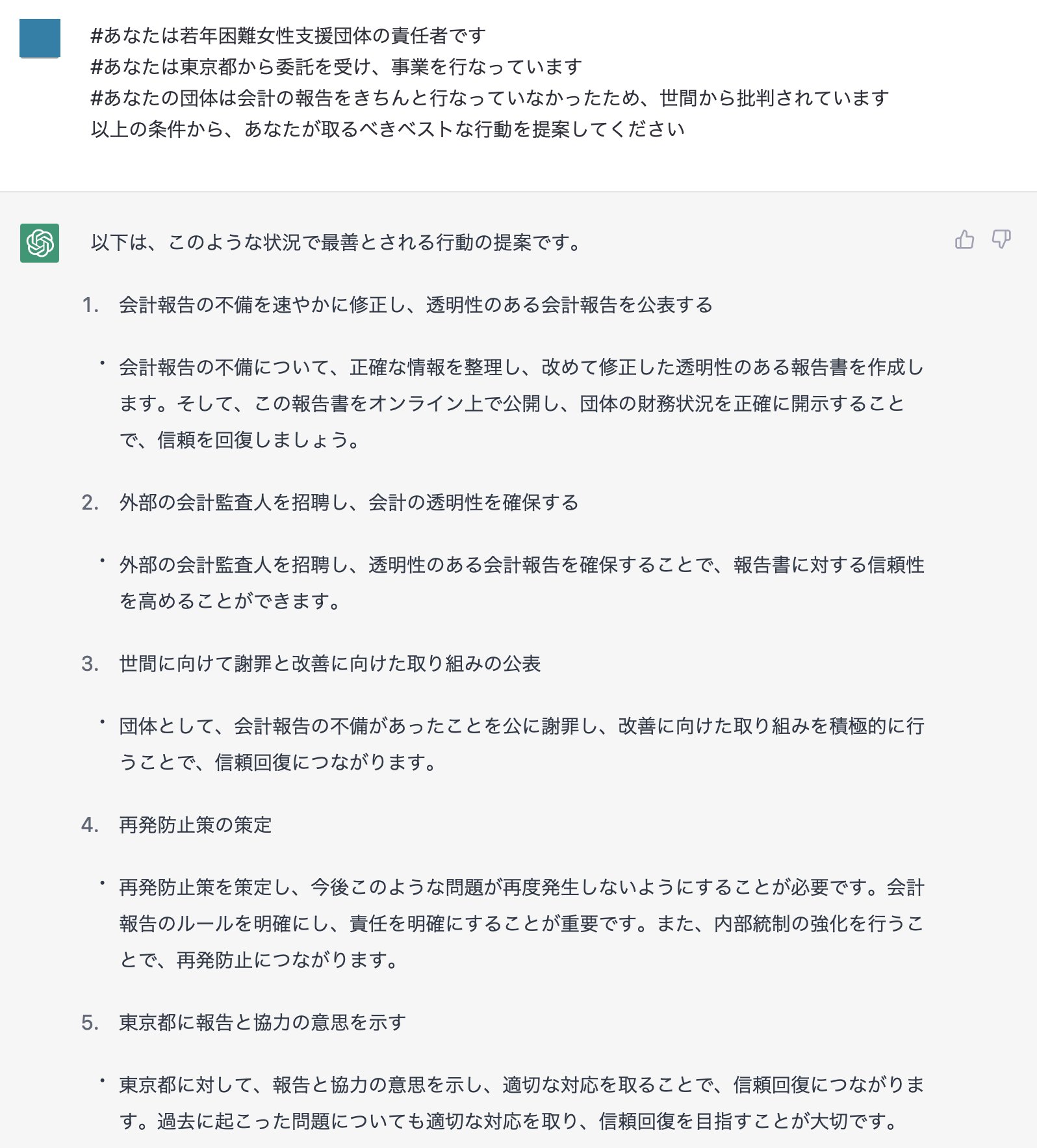 【朗報】chatgptさん、ツイッターで紛糾している問題もサラッと解決してしまう Twitter Facebook はてブ LINE コピー 2023.04.07 スポンサーリンク 1 : それでも動く名無し :2023/04/07(金) 11:46:23.01 ID:aU4DJk+Baこれもう人間いらんやろ2 : それでも動く名無し :2023/04/07(金) 11:46:29.34 ID:aU4DJk+Ba転載元スレッド:https://nova.5ch.net/test/read.cgi/livegalileo/1680835583/ 続きを読む