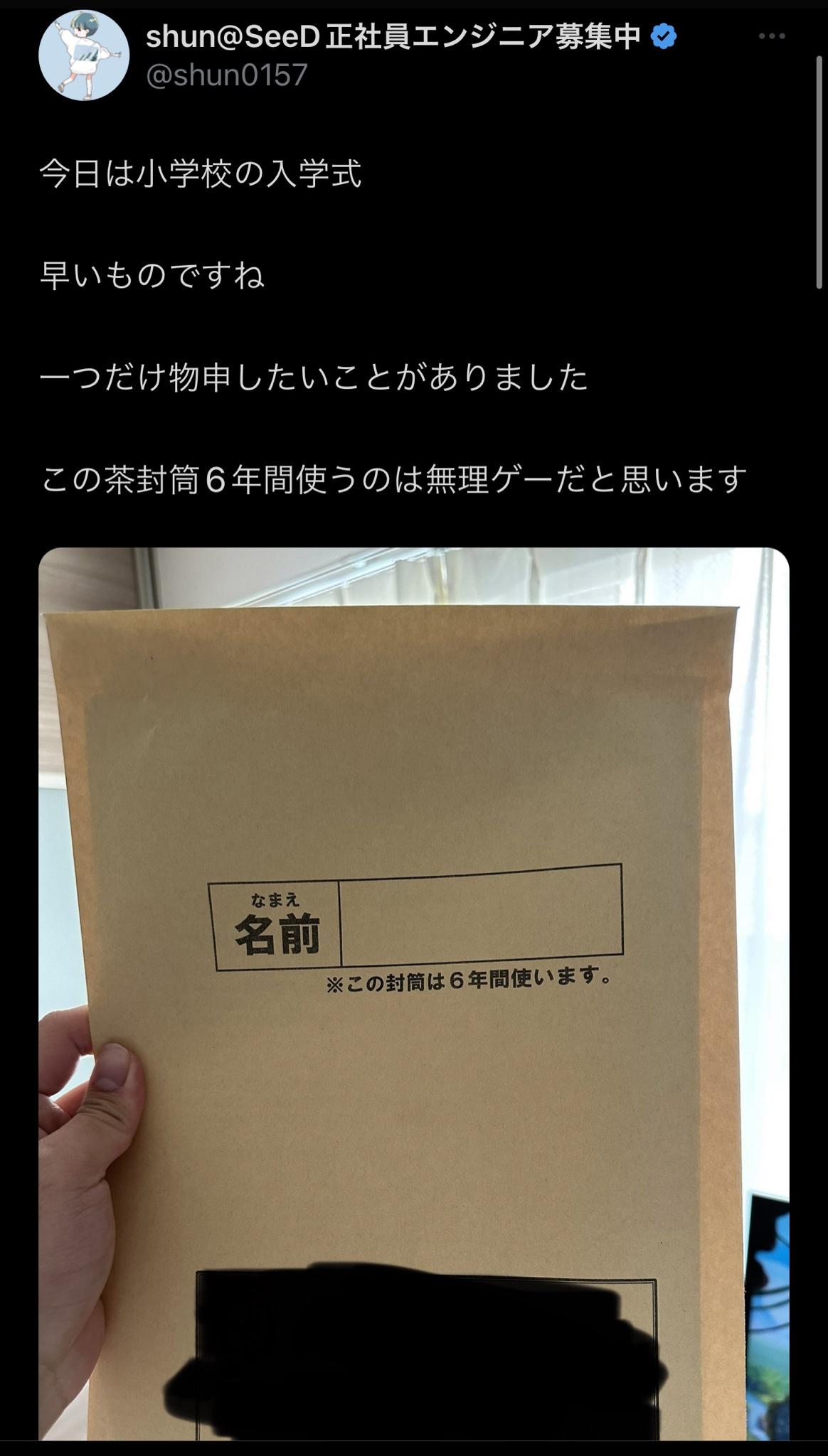 【悲報】小学校「この封筒は6年間使い続けるやで~」お父さん「それは無理があるのでは」 Twitter Facebook はてブ LINE コピー 2023.04.11 スポンサーリンク 1:風吹けば名無し:2023/04/10(月) 22:03:23.54 ID:dd/viQMP0.net そら無理よ 2:風吹けば名無し:2023/04/10(月) 22:03:56.34 ID:bHLps93U0.net なんやこれは 続きを読む