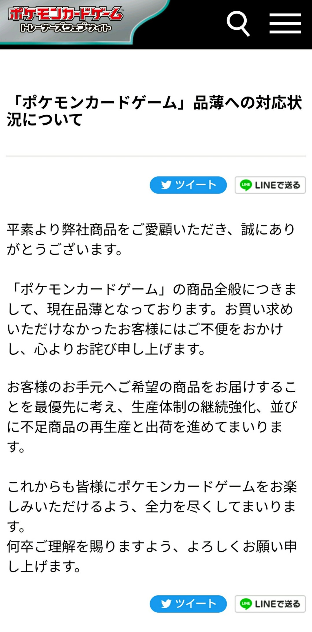 ポケモンカード公式「生産体制強化します。これからドンドン出荷します」 Twitter Facebook はてブ LINE コピー 2023.04.15 スポンサーリンク 1: それでも動く名無し 2023/04/15(土) 12:19:55.80 ID:kN3Ko9zk0 転売ヤー、終わる https://www.pokemon-card.com/info/003904.html 5: それでも動く名無し 2023/04/15(土) 12:21:34.46 ID:amJA9RQjx 初版マークっていま無いんか? 81: それでも動く名無し 2023/04/15(土) 12:38:01.11 ID:S8Nx17sUd >>5 ない 刷れば刷るだけ価値は下がる 続きを読む