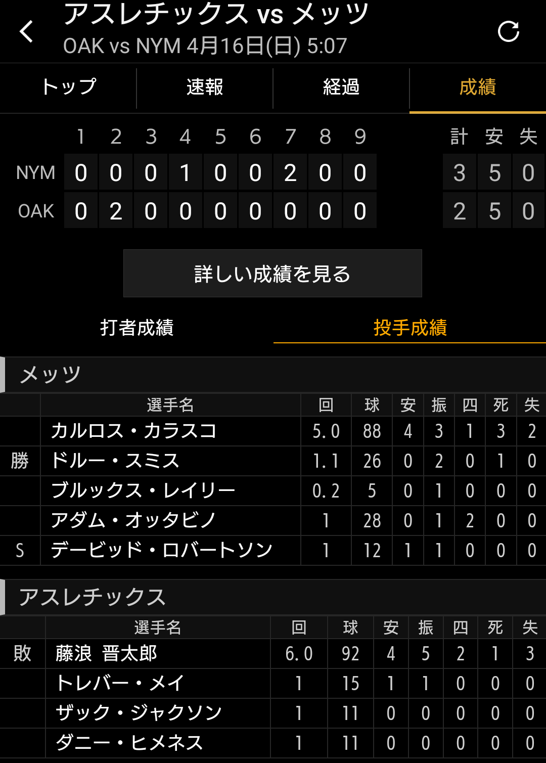 試合詳細 ⇒ https://t.co/aSEHspO9Nt #mlbjp #藤浪晋太郎 https://t.co/eTY5rQFL8m