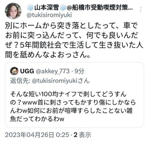 【悲報】船橋市議選で落選した「ヤクザ匂わせ候補」、一般人を脅迫してアカウント凍結wwwwwwwww Twitter Facebook はてブ LINE コピー 2023.04.27 スポンサーリンク 1 : 風吹けば名無し :2023/04/27(木) 00:02:12.03 ID:pIHDJ8H40 https://twitter.com/tukisiromiyuki転載元スレッド:https://eagle.5ch.net/test/read.cgi/livejupiter/1682521332/ 続きを読む