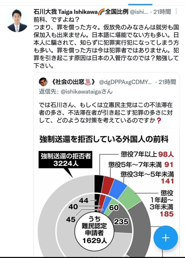 — 石川大我 Taiga Ishikawa🌈全国比例 (@ishikawataiga) April 27, 2023