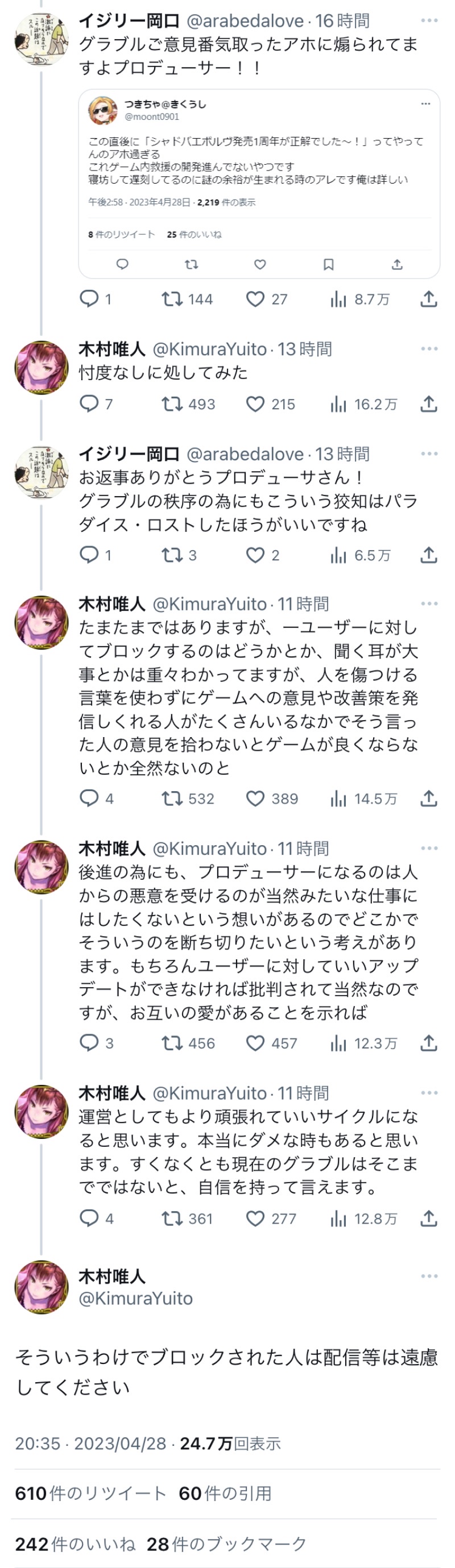 ブロックされてから配信禁止ツイートされて見えないだろって突っ込まれてるの草