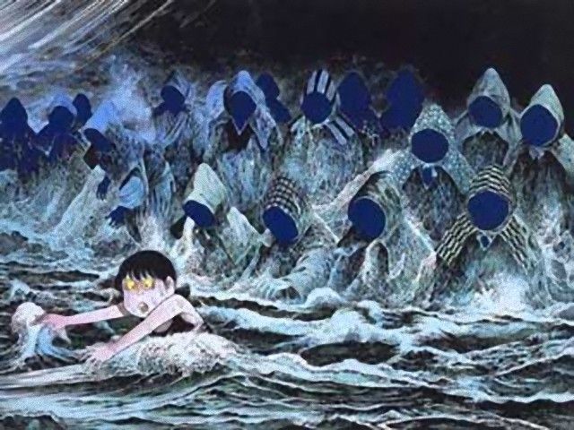 モンペをはいた何十人という女がこちらに向って泳いできて、