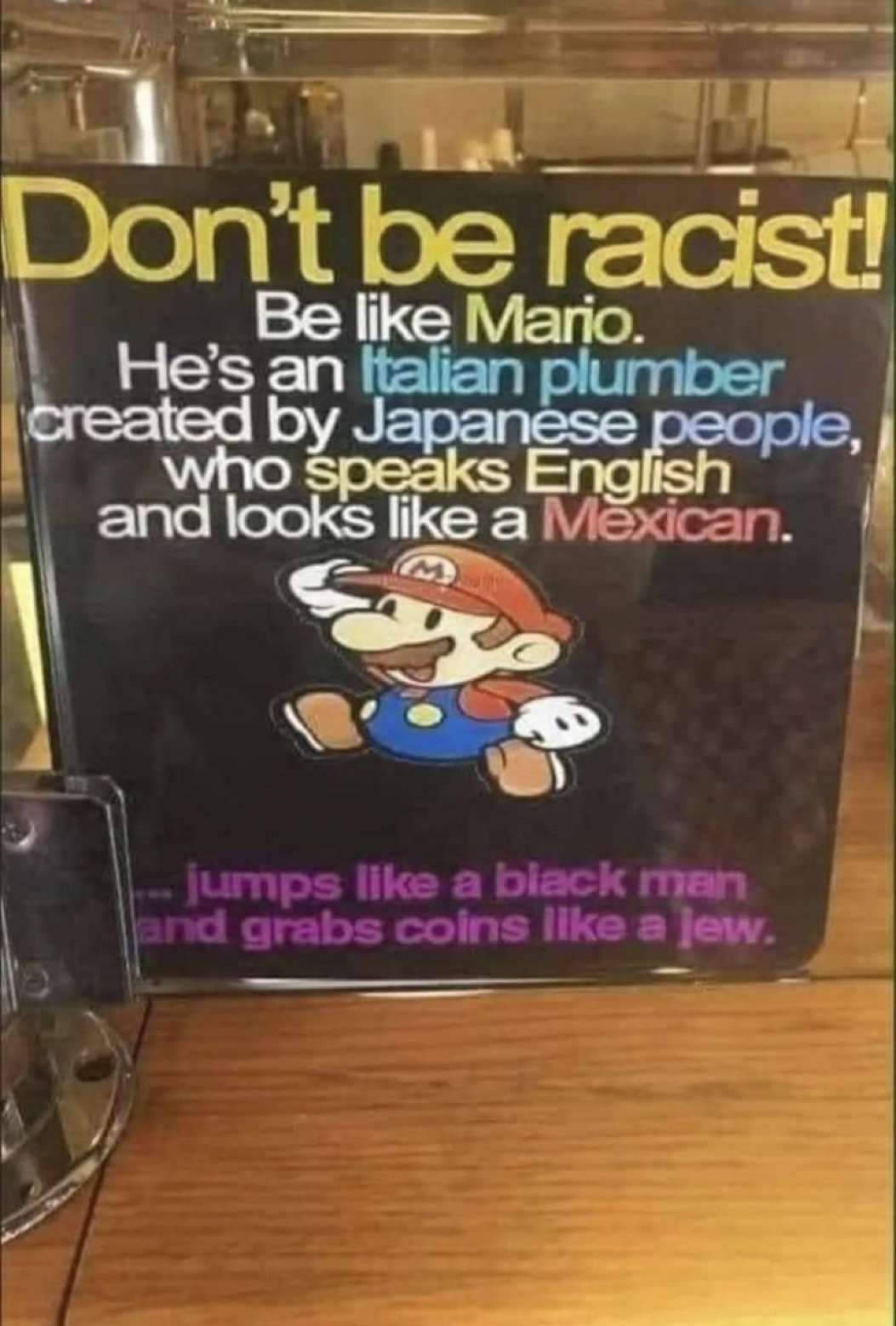 【朗報】マリオさん、全ての人種をカバーする最強のポリコレキャラだった! Twitter Facebook はてブ LINE コピー 2023.04.30 スポンサーリンク 1 : それでも動く名無し :2023/04/30(日) 19:41:41.39 ID:zh2wuEo10人種差別をするな!マリオのようになれ。彼はイタリアの配管工だ日本人が作った英語を話し、メキシコ人のように見える。黒人のようにジャンプし、ユダヤ人のようにコインをつかむ。転載元スレッド:https://nova.5ch.net/test/read.cgi/livegalileo/1682851301/ 続きを読む