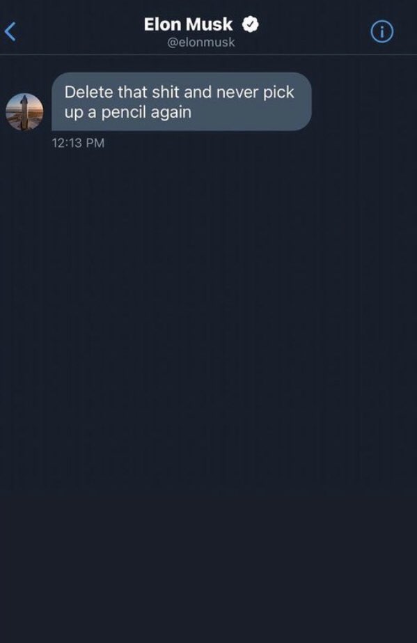【画像】イーロン・マスクさん、似顔絵を描いたガチのイーロンファンにブチギレwww Twitter Facebook はてブ LINE コピー 2023.05.06 スポンサーリンク 1:2023/05/05(金) 17:37:20.70 ID:AR5dJc1s00505似顔絵描いてウキウキでリプ↓イーロン・マスクからDMが届く転載元スレッド:https://nova.5ch.net/test/read.cgi/livegalileo/1683275840/ 続きを読む