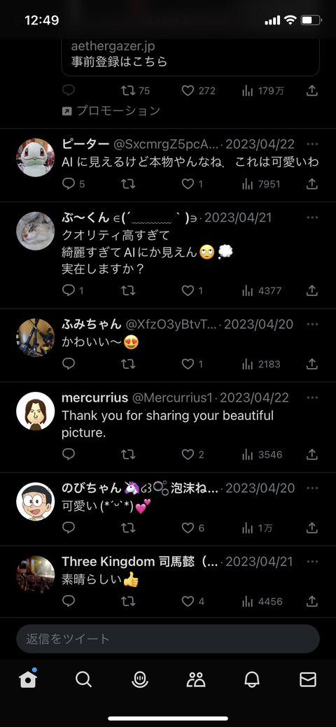 【悲報】AIグラビア画像の人になりきってSNSをやるのがバズってしまう… Twitter Facebook はてブ LINE コピー 2023.05.06 スポンサーリンク 1:風吹けば名無し:2023/05/06(土) 12:51:10.36 お前らちょろすぎやろ… ワイもやろうかな、ワイだったらAmazonの欲しい物リスト公開しとく 続きを読む