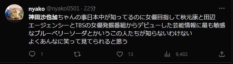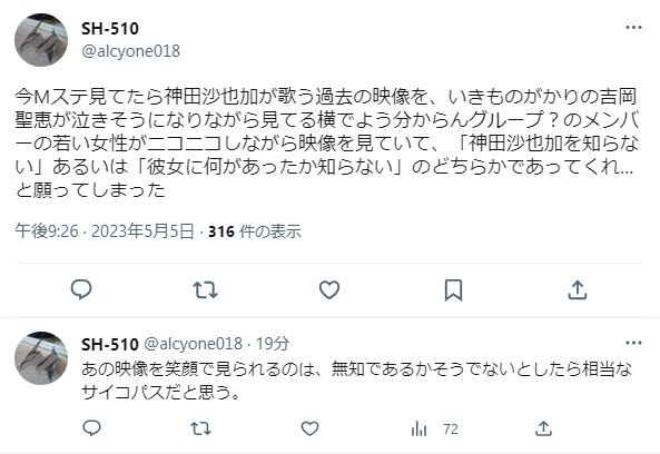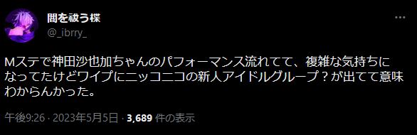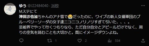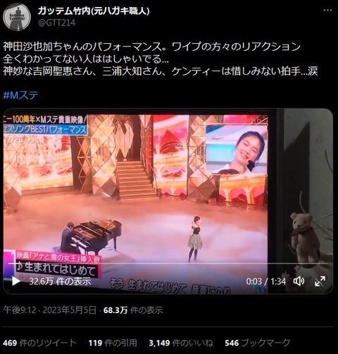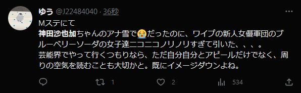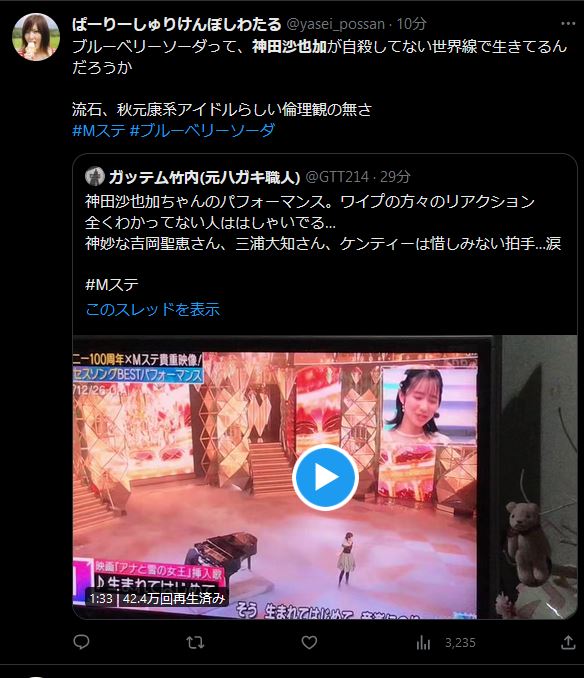 【炎上】Mステで神田沙也加ちゃんの映像→ワイプでブルーベリーソーダがはしゃいで「不謹慎」と叩かれる
