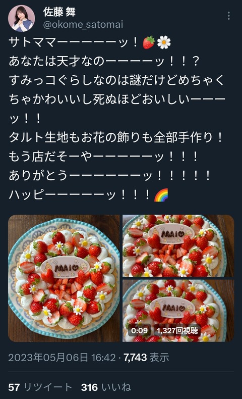 【画像】女性声優さん「え、待って。ママが誕生日ケーキ作ってくれた笑」パシャリ Twitter Facebook はてブ LINE コピー 2023.05.07 スポンサーリンク 1:以下、5ちゃんねるからVIPがお送りします:2023/05/06(土) 19:48:15.814 ID:wem+QIvlr 3:以下、5ちゃんねるからVIPがお送りします:2023/05/06(土) 19:49:14.351 ID:6QR1hS9Z0 おいしそう 4:以下、5ちゃんねるからVIPがお送りします:2023/05/06(土) 19:49:25.457 ID:gSDITSKx0 コレ見て何を思えと 続きを読む