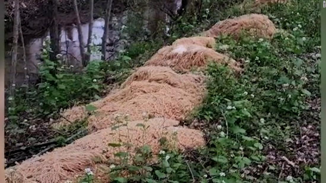 (CNN) 米ニュージャージー州オールドブリッジの森の中でこのほど、重さ約135~180キロに相当するともみられる大量のパスタが廃棄されているのが見つかった。