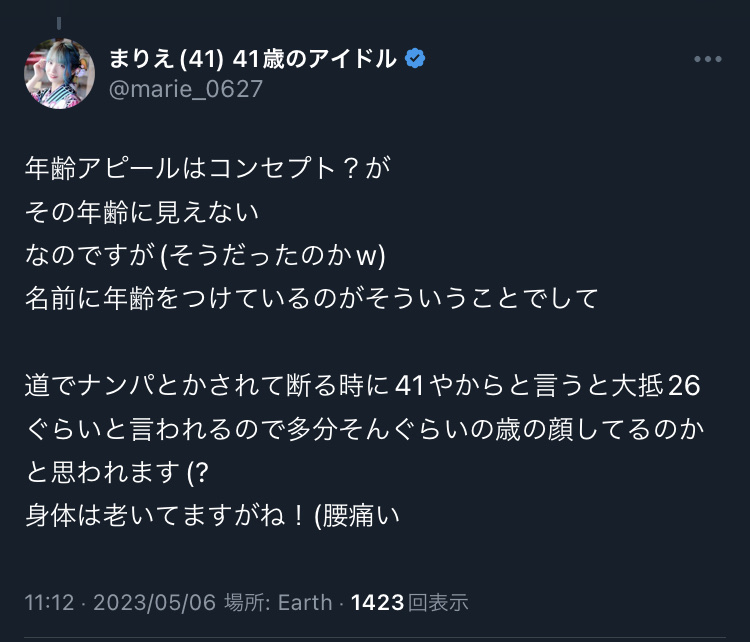 道でナンパとかされて断る時に41やからと言うと大抵26ぐらいと言われるので多分そんぐらいの歳の顔してるのかと思われます(?