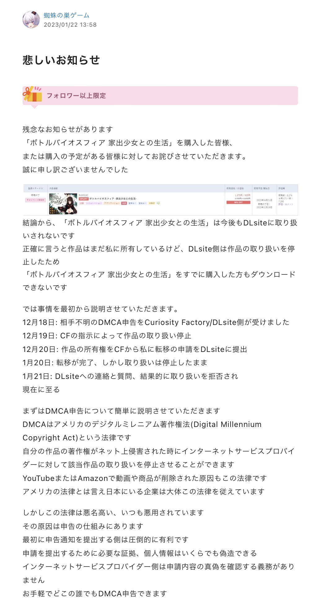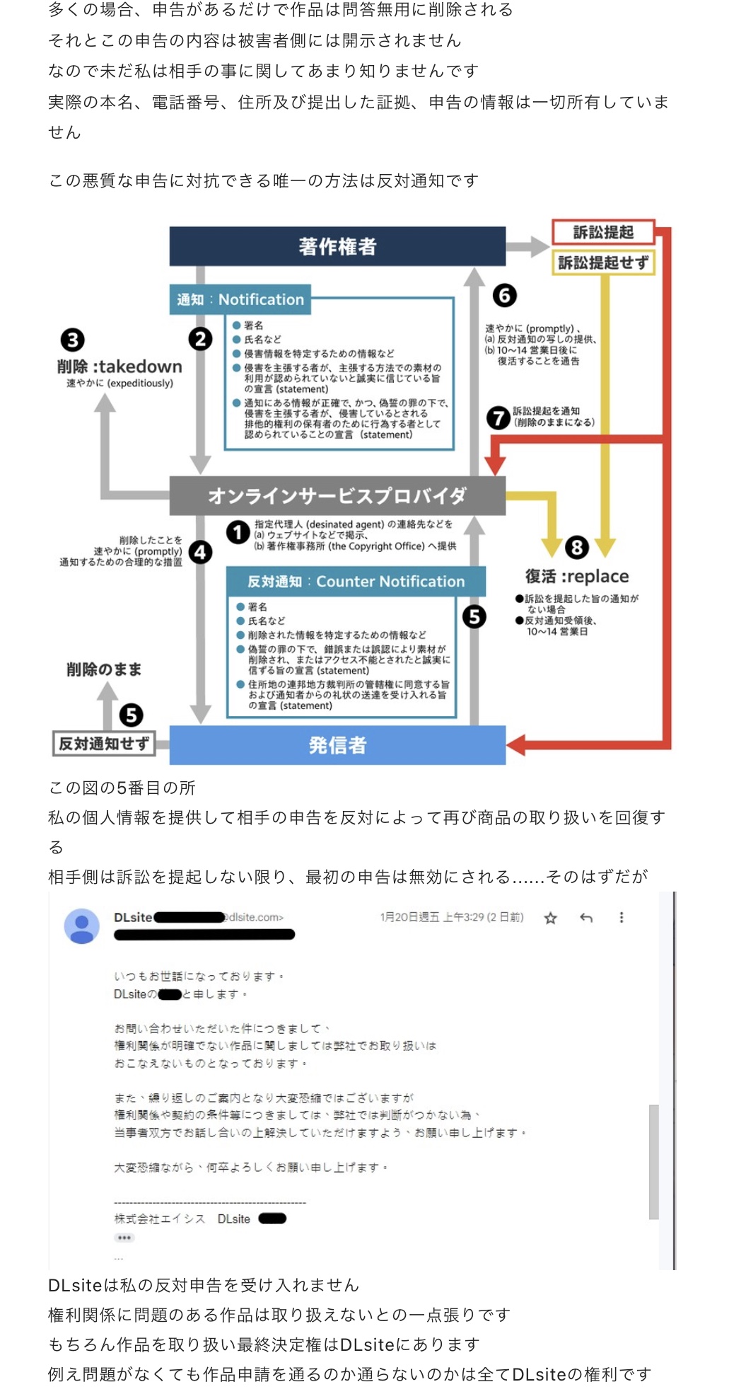 勝手に権利主張するヤバイ奴はどこにでもおるんやろうけどこれはdlsiteが完全に対応間違えた