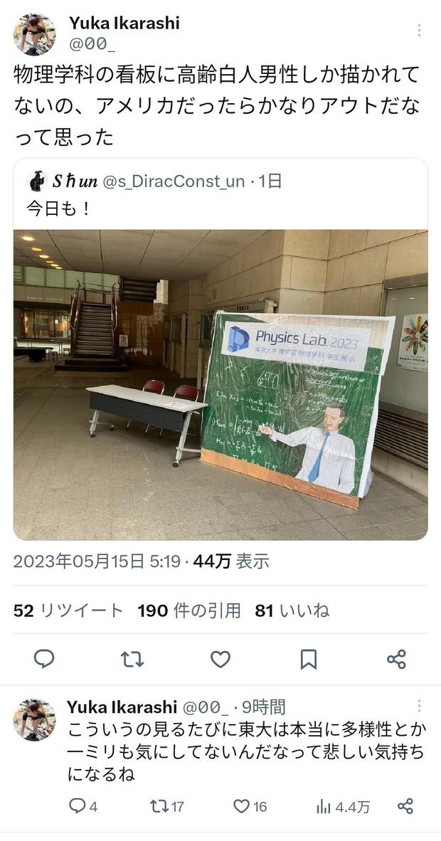 【悲報】女性「イヤアアアアア!東大に白人男性の看板があるのおおお!アメリカならアウト!」 Twitter Facebook はてブ LINE コピー 2023.05.15 スポンサーリンク 1 : それでも動く名無し :2023/05/15(月) 14:48:37.76 ID:9gchQlMU02 : それでも動く名無し :2023/05/15(月) 14:49:11.87 ID:iMdEmlRgdアメリカじゃねえからな転載元スレッド:https://nova.5ch.net/test/read.cgi/livegalileo/1684129717/ 続きを読む