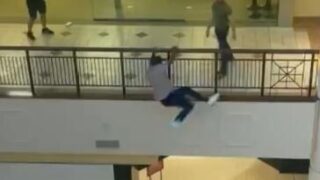 アップルストアで強盗をした後、逃げようとして2階から飛び降りる男