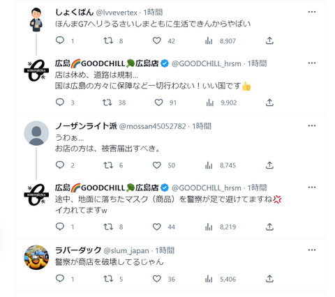 途中、地面に落ちたマスク(商品)を警察が足で避けてますね![]()