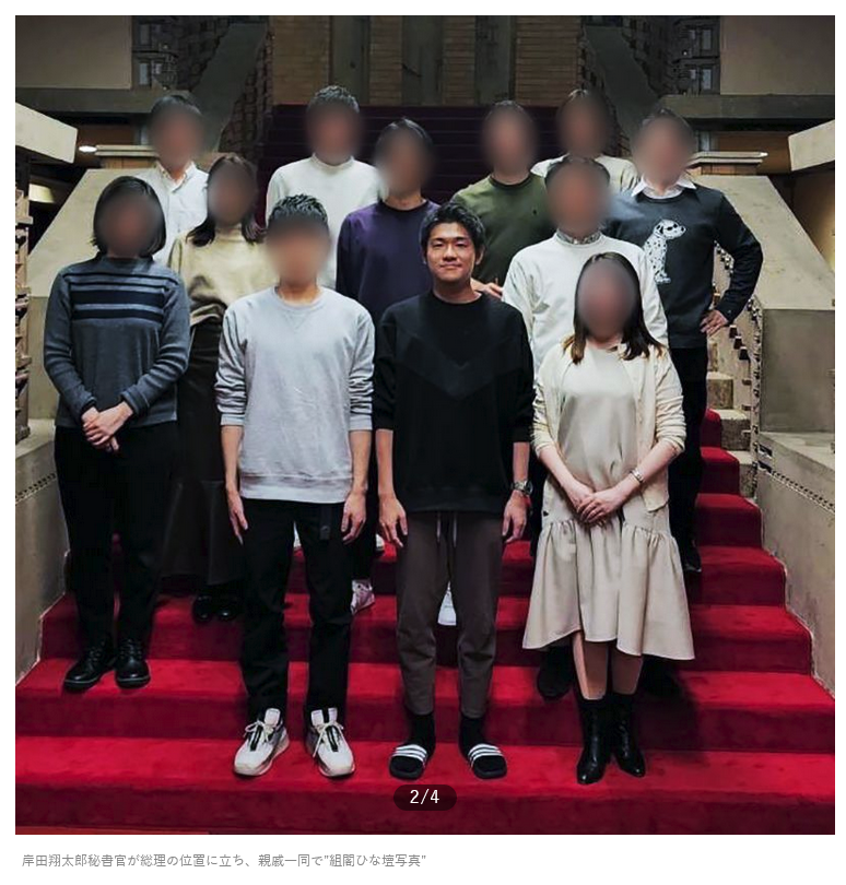 岸田首相一族が首相公邸で大ハシャギ 「階段寝そべり」写真と翔太郎秘書官の「閣僚ひな壇」撮影