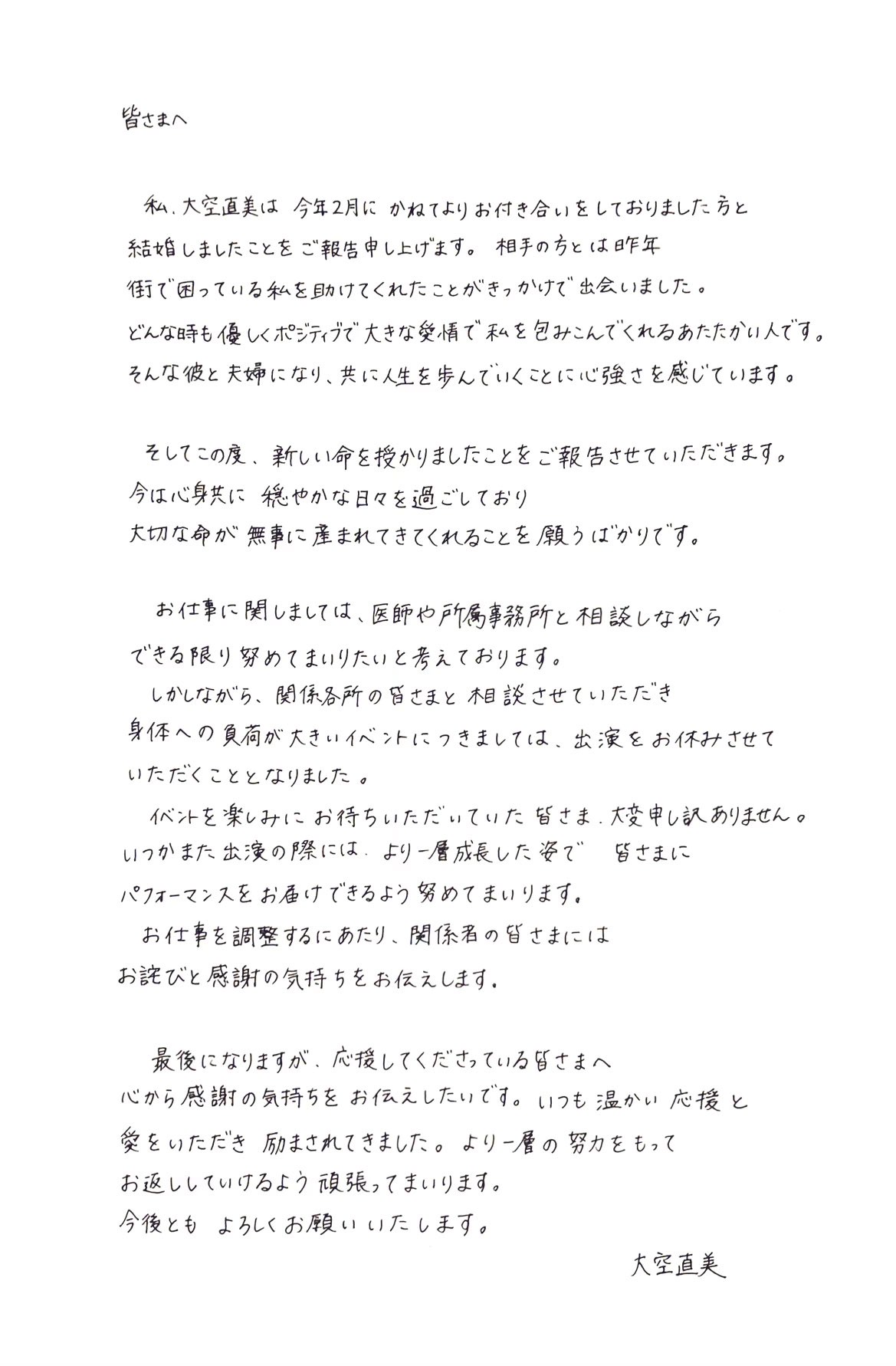 今年2月に結婚していたことと妊娠していることを報告。所属事務所は公式サイトで「出産は冬頃の予定となっております。妊娠中のお仕事については母子の健康と安全を最優先に考え対応して参ります」と伝えた。 pic.twitter.com/0co4S3lxFy