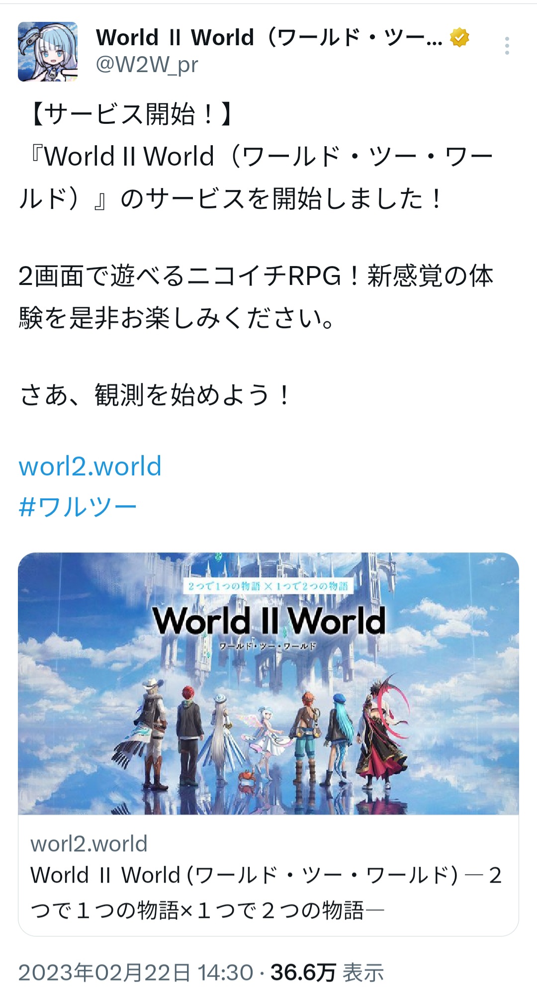 — World Ⅱ World(ワールド・ツー・ワールド)【公式】@好評配信中! (@W2W_pr) May 31, 2023
